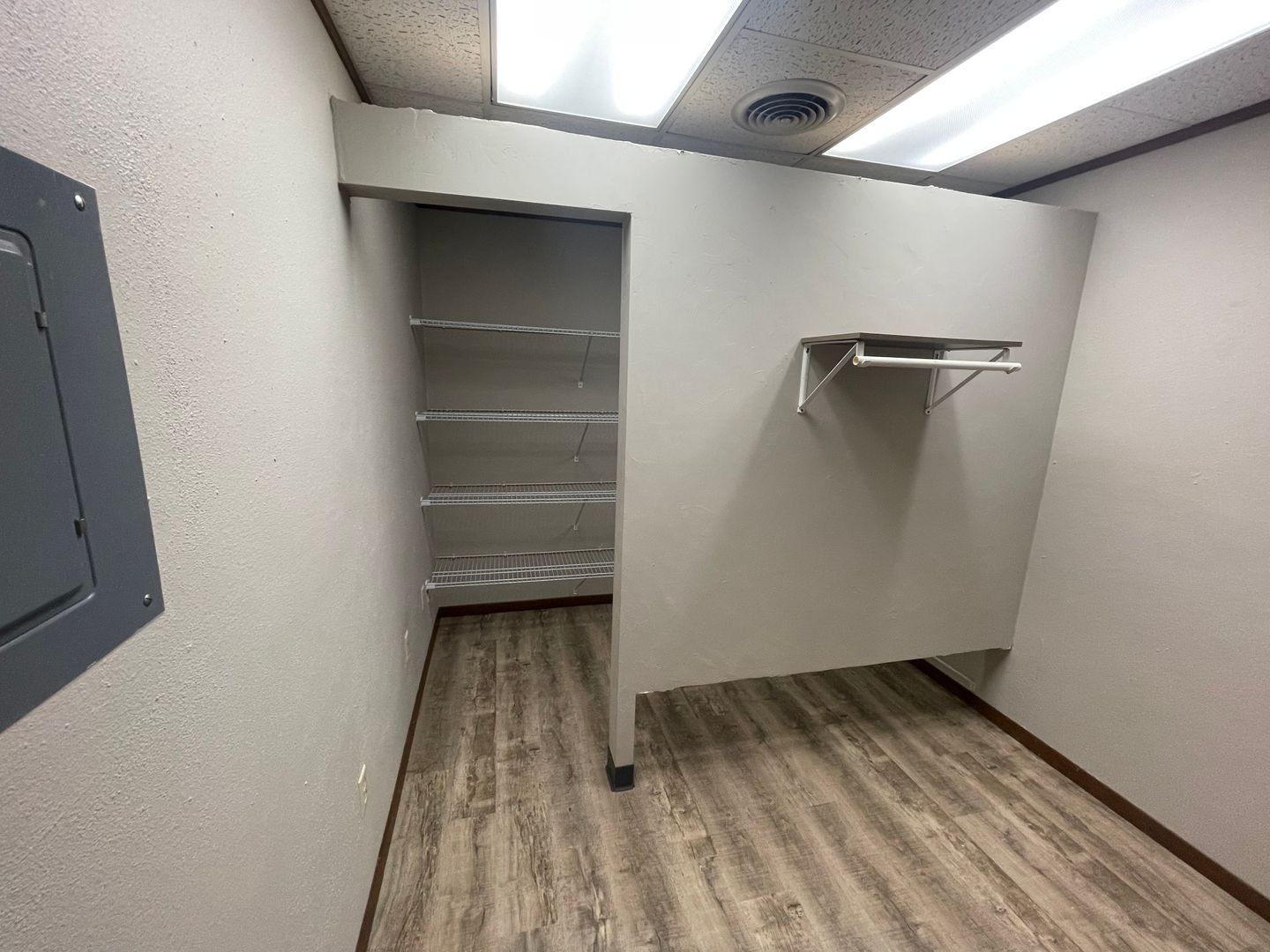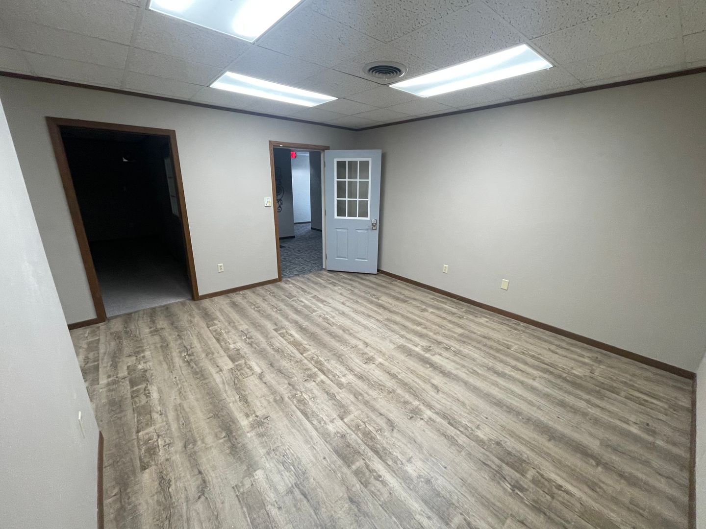 A combination of three commercial suites with three large offices and ample storage rooms. Large kitchenette for a private break room. Open space to be used as you please! Community bathrooms right down the hall. Elevator access and off street parking included. Resident is responsible for all utilities.